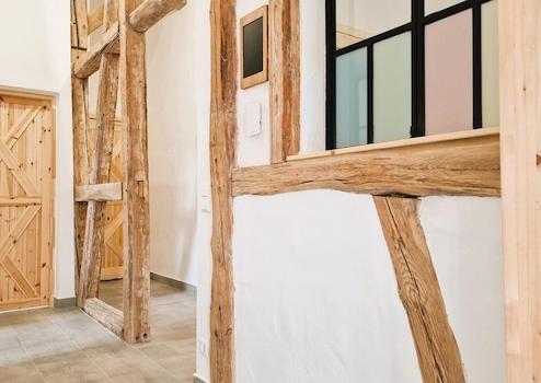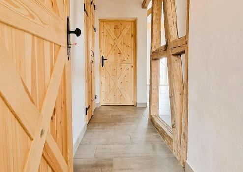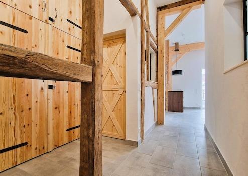 Das Fachwerkhaus, detailverliebt saniert, vereint den Charme vergangener Jahrhunderte mit modernem Wohnkomfort. Mit Lehmbauweise gestaltete Wände sorgen nicht nur für ein außergewöhnliches Raumklima, sondern regulieren auf natürliche Weise die Feuchtigkeit und schaffen eine angenehme, gesunde Wohnatmosphäre.