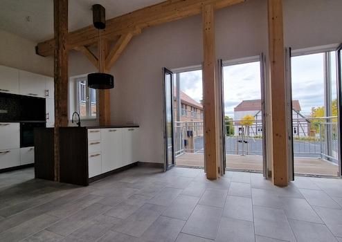 Willkommen in Ihrem neuen Zuhause, in dem Tradition und moderne Technik Hand in Hand gehen! Diese frisch errichtete Fachwerk-Wohnung ist barrierearm und bietet ein unvergleichliches Wohngefühl und setzen neue Maßstäbe für nachhaltiges Wohnen.