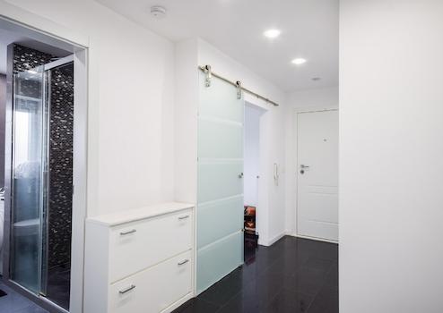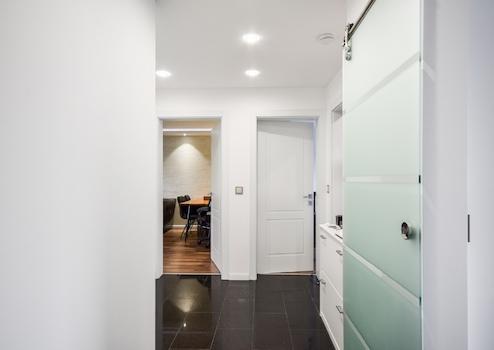 Schon beim Betreten der Wohnung empfängt Sie ein großzügiger Flur, der nicht nur einladend wirkt, sondern auch über einen praktischen Einbauschrank verfügt – ideal zur Aufbewahrung von Jacken, Schuhen oder Haushaltsutensilien.