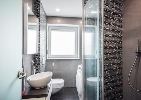 - Badezimmer mit Fenster und Waschmaschinenanschluss