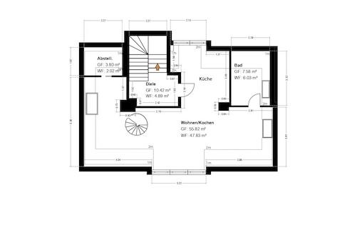 Mit Deckenhöhen von bis zu 4 Metern im Dachgeschoss und einer angenehmen Raumhöhe von 2,60 Metern in den übrigen Etagen entsteht eine großzügige Wohnatmosphäre.