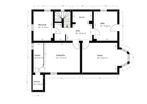 Das Anwesen ist vollständig unterkellert und bietet hier eine besondere Überraschung: Eine im traditionellen Stil gehaltene Stubn aus Holz, die mit einer Bar ausgestattet ist. Zudem befindet sich im Untergeschoss eine Sauna.
