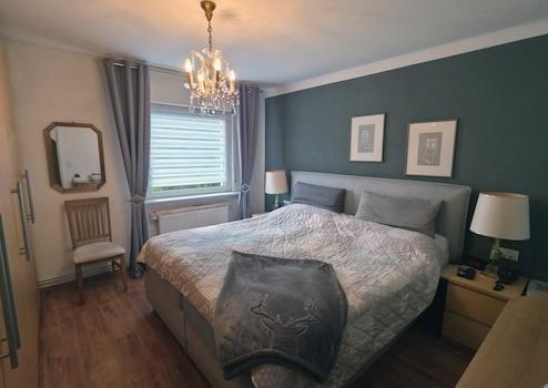 Raumaufteilung: Im Erdgeschoss erwartet Sie eine rund 60 m² große, lichtdurchflutete 3-Zimmer-Wohnung mit durchdachtem Schnitt. Der großzügige Wohn- und Essbereich bietet direkten Zugang zum gepflegten Garten. Die helle, geräumige Küche lädt zum gemeinsamen Kochen ein, während zwei Schlafzimmer und ein Tageslichtbad diese Etage komplettieren.