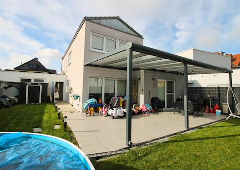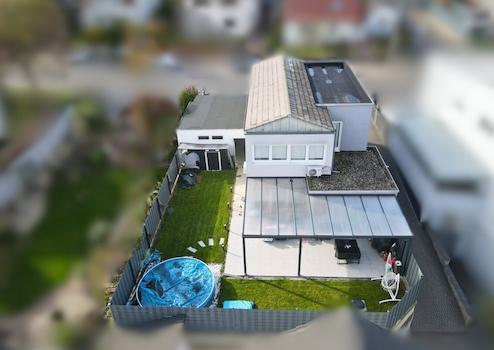 Der liebevoll angelegte Garten ist eine wahre Oase der Entspannung: Eine überdachte Terrasse lädt zu gemütlichen Stunden im Freien ein, und der großzügige Pool bietet an warmen Tagen Erfrischung und Urlaubsfeeling pur – direkt vor Ihrer Haustür.