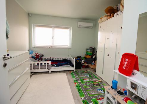 Im Obergeschoss erwarten Sie drei helle und komfortable Schlafzimmer, die dank der im gesamten Haus verbauten Klimaanlagen jederzeit ein angenehmes Raumklima gewährleisten. Hier findet jedes Familienmitglied seinen persönlichen Rückzugsort.