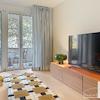 Im Wohnzimmer lädt ein elegantes Minotti-Sofa zum Entspannen ein. Von hier aus besteht ebenfalls Zugang zum Balkon, der zusätzlichen Wohnkomfort bietet. Der Essbereich schließt harmonisch an die offene, voll ausgestattete Design-Küche an, die mit hochwertigen Geräten und Materialien überzeugt.