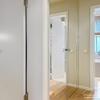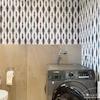 Das Badezimmer ist modern gestaltet, hier steht auch der WaschTrockner.