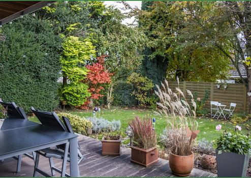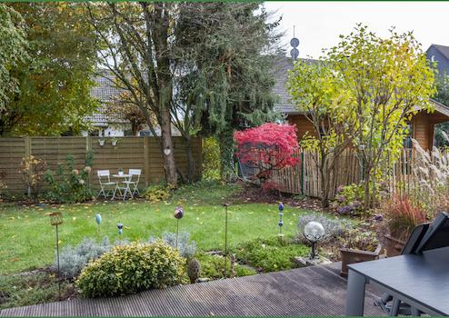 Der Garten hat eine angenehme und überschaubare Größe. Nicht zu groß und nicht zu klein. Durch den Baumbewuschs ist er so gut wie nicht einsehbar.