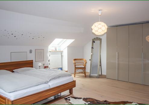 Es könnte sogar ein 5. Schlafzimmer geschaffen werden. Eine Zwischenwand im Dachgeschoss wurde seinerzeit entfernt, so dass aus 2 kleineren Zimmern ein großes Schlafzimmer entstand.