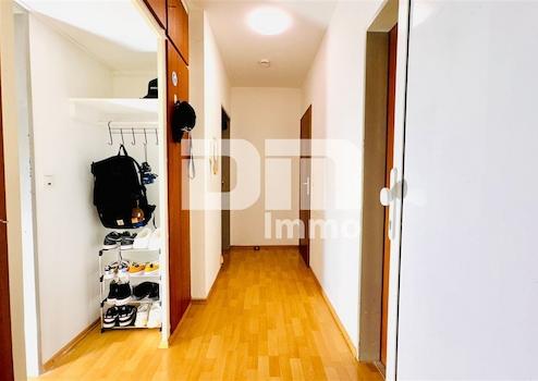 Herzstück der Wohnung ist das modern geschnittene Wohn-/Esszimmer, das mit strapazierfägigem Laminatboden, großen Fensterfronten und direkten Zugang zum Balkon/Loggia zu überzeugen weiß.