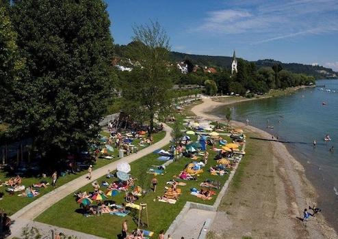 Insgesamt befinden sich nur 2 Wohneinheiten im Haus, zusätzlich im Erdgeschoss ein Lebensmittel-Landmarkt. Von der Grundstücksgrenze bis zum Wasser sind es nur ca. 100 Meter. In wenigen Gehminuten sind zu erreichen: Schulen, Kindergarten, Uferpark, Strandbad, Bahnhof, Bushaltestelle, Hafen, Schiffsanlegestelle.