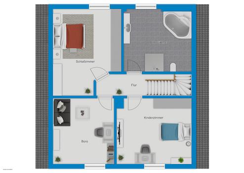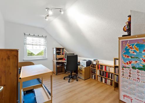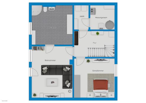 Das Untergeschoss bietet dank seiner vollwertigen Ausstattung einen echten Mehrwert: ein eigenes Schlafzimmer, ein Wohn- oder Hobbyraum sowie ein Bad mit Platz für einen Wellnessbereich – beispielsweise eine Sauna – machen diesen Bereich zum idealen Rückzugsort für Teenager oder Gäste. Zusätzlich befinden sich hier der Hausanschlussraum mit Wärmepumpe sowie ein separater Waschraum.