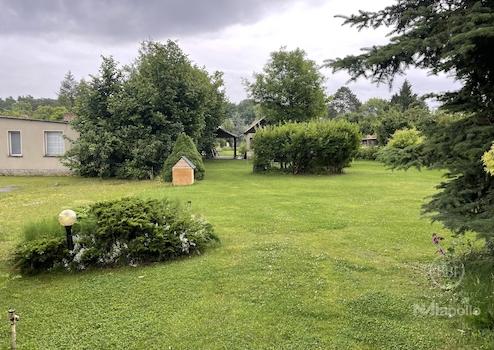 - gepflegte Rasenflächen mit Bäumen und Büschen
