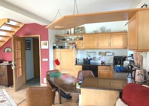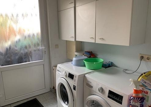 Ein Schlafzimmer (jetzt als Büro genutzt), die offene Küche, ein Gäste-Bad mit Dusche und der Hauswirtschaftsraum sind ebenfalls im Erdgeschoss zu finden.