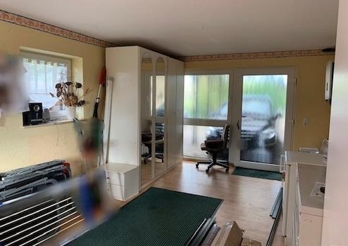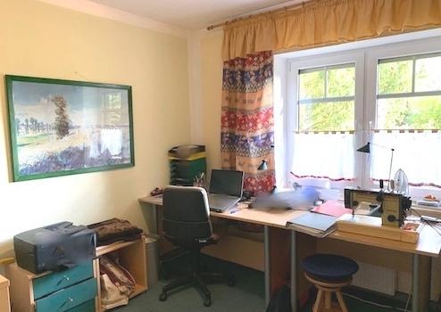 Als Büro (rund 17 m²) ist die ehemalige Garage ausgebaut.