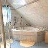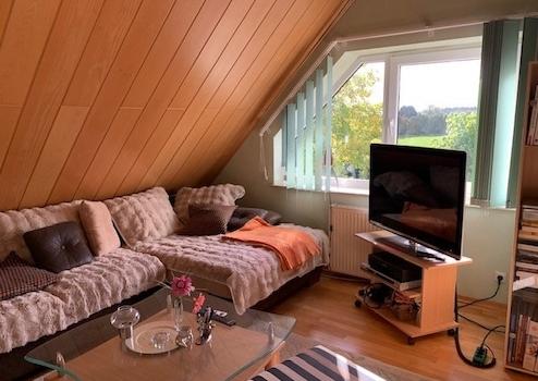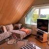 Im Obergeschoss liegen die privaten Räume: das Schlafzimmer, ein zweites Wohnzimmer (vormals Kinderzimmer), das große Bad mit Badewanne und Dusche sowie die Sauna sind hier untergebracht. Den besten Ausblick mit Abendsonne genießen Sie vor hier.