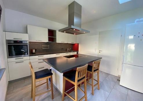 * Wohnkomfort: großes, offenes Wohnzimmer mit Panoramafenster und Übergang zur großzügigen und sonnigen Südterrasse (24 m²) mit Sonnenschutz, offene, moderne Küche auch Dank VELUX-Dachfenster mit viel Tageslicht, Kamin im Wohnzimmer von SPARTHERM gemäß Bundesemissionsschutzgesetz (Zertifikat zu Bestandsschutz liegt vor), separates Arbeitszimmer, Tiefgarage direkt am Haus (eher für kleinere Autos geeignet), Parkmöglichkeiten auf dem Grundstück