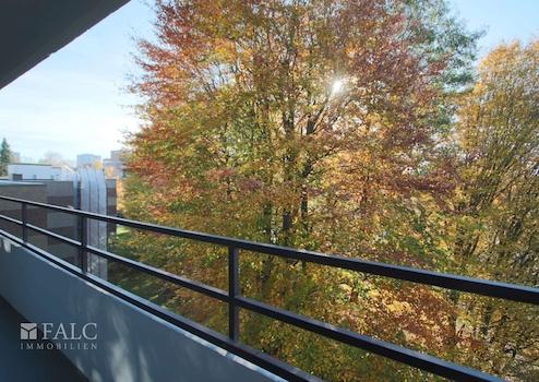 Das helle Wohnzimmer besticht durch seine großen Fenster, die den Raum mit Tageslicht. Ein Highlight der Wohnung ist der Südwest Balkon, der zum Entspannen einlädt und keine Einsicht der Nachbarn bietet. Hier können Sie entspannte Stunden verbringen und die frische Luft genießen.