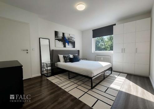 Die Wohnung verfügt über zwei Schlafzimmer, die beide hell und freundlich sind. Das Hauptschlafzimmer bietet genügend Platz für ein großes Bett und einen Kleiderschrank. Das zweite Schlafzimmer ist flexibel nutzbar, sei es als Kinderzimmer oder Büro, und besticht durch zwei große Fenster, die einen herrlichen Blick auf die Balkonseite und ins Grüne bieten. Beide Räume sind lichtdurchflutet und bieten einen angenehmen Rückzugsort.
