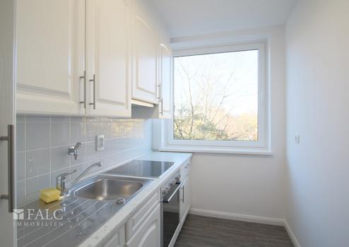 Die Einbauküche ist ebenfalls zeitlos, gepflegt und bietet ausreichend Stauraum.