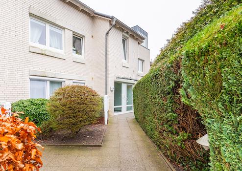 Die Immobilie befindet sich im Erdgeschoss einer kleinen Wohnanlage mit weißer Klinkerfassade und ansprechender Architektur mit klaren Linien. Im Gemeinschaftseigentum stehen den Bewohnern ein Trockenraum und ein Fahrradkeller zur Verfügung.