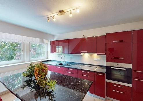 Der ausgebaute Keller eröffnet weitere Möglichkeiten: eine gemütliche Küche mit Sitzgelegenheit, ein Badezimmer, mehrere großzügige Räume für Gäste, Hobby oder Home-Office sowie ein direkter Zugang zur integrierten Tiefgarage und in den Gartenbereich. Grundsätzlich handelt ers auch hierbei um eine komplett ausgebaute Wohneinheit – lediglich ein paar cm hinsichtlich der Deckenhöhe fehlen, um diesen Bereich als offizielle Wohnfläche ausweisen zu können.