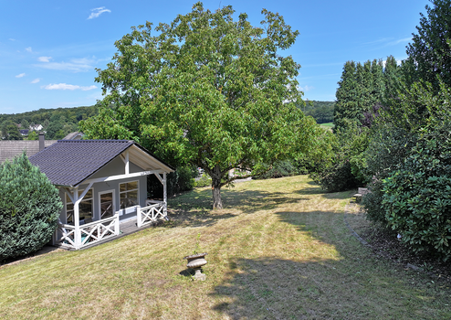 Der Außenbereich wird schnell zu Ihrem Lieblings-Ort: zwei Balkone, eine Sonnenterrasse, eine überdachte Terrasse, große Gartenflächen mit tollem, altem Baumbestand und viel Privatsphäre. Hier finden Kinder ein Paradies zum Spielen und Entdecken, während Erwachsene den Freiraum und die Ruhe genießen. Für gesellige Stunden steht die schicke, massiv errichtete Gartenhütte bereit. Diverse PKW-Parkplätze runden das üppige Platzangebot ab.