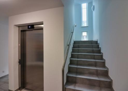 - großzügige Bewegungsflächen in den Gemeinschaftsfluren und vor dem Fahrstuhl, auch für Rollstuhlfahrer geeignet