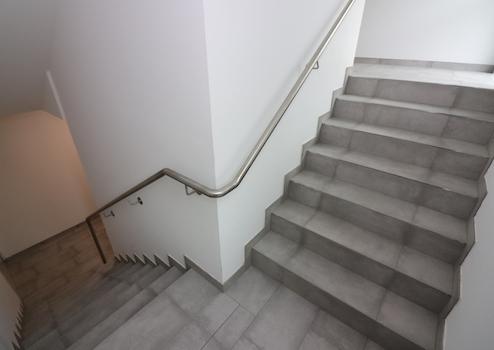 - großzügige Bewegungsflächen in den Gemeinschaftsfluren und vor dem Fahrstuhl (Vorderhaus), damit entsteht ein stimmiger Gesamteindruck und eine bequeme Nutzbarkeit ist auch für Rollstuhlfahrer gesichert