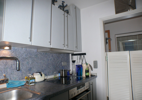 Balkon, Duschbad, Einbauküche, Teppichboden, Fliesen