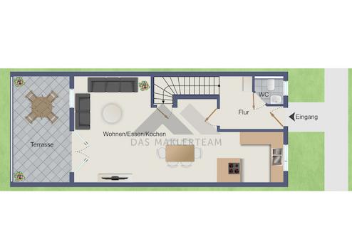 Die detaillierte Baubeschreibung senden wir Ihnen gerne auf Anfrage zu. Das in den Plänen eingezeichnete Mobiliar stellt einen Vorschlag dar, die Einrichtung ist nicht enthalten. Angegebene Grundstücksflächen beinhalten Hausgrund, Wege und Garagengrund.