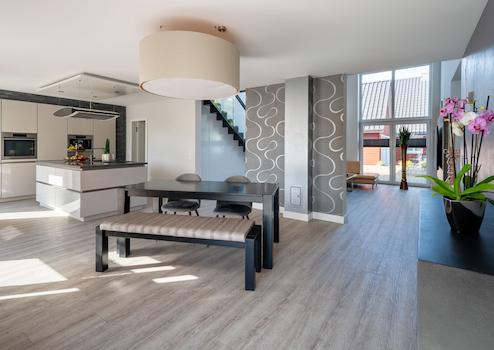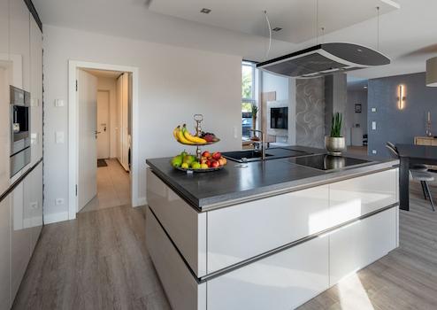 Schon von außen zeigt dieses schöne Einfamilienhaus, dass hier mit viel Expertise und Geschmack gebaut wurde: die beeindruckende, großflächig verglaste Giebelseite, der gepflegte Garten mit umlaufender Hecke, die große Garage mit Hobbyraum im Dachboden sowie der geräumige Wintergarten fallen sofort ins Auge. Innen beeindruckt das Objekt mit klaren Linien, großzügig geschnittenen Räumen, hohen Decken und einer ganz besonderen Wohnatmosphäre. Wer Platz für sich und seine Familie sucht, gleichzeitig viel Wert auf Qualität, Design und Lebensgefühl legt, ist hier genau an der richtigen Adresse. Das Haus ist quasi einzugsbereit, und in dieser Lage findet man ein solches Immobilien-Highlight nur sehr selten. Vereinbaren Sie also baldmöglichst einen Besichtigungstermin mit uns, es lohnt sich!
