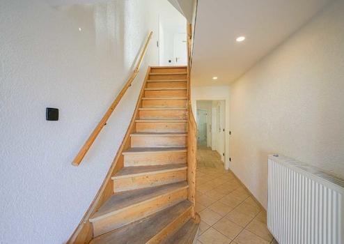 Im 1. Obergeschoss finden Sie zwei weitere potentielle Schlafzimmer und ein kleineres Badezimmer, ausgestattet mit einer Dusche. Von beiden Schlafzimmern aus gelangen Sie auf den sonnigen Balkon.