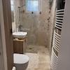 Zwei Bäder: eines mit Dusche, eines mit Badewanne und Bidet