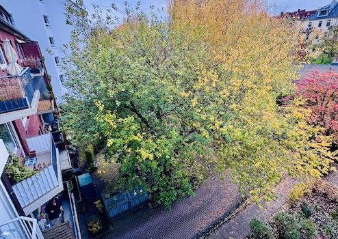 Die Wohnung orientiert sich zum begrünten Innenhof. Dadurch entsteht eine seltene Kombination: innenstadtnah wohnen, auf dem Balkon dennoch ins Grüne blicken. Rund um den Mühlenkamp finden sich Cafés, Wochenmarkt, Lebensmittelhandwerk, Apotheken sowie alle Dinge des täglichen Bedarfs. Der Winterhuder Marktplatz, der Goldbekkanal und die Alsterufer sind bequem zu Fuß erreichbar; der Stadtpark liegt nur wenige Fahrradminuten entfernt.