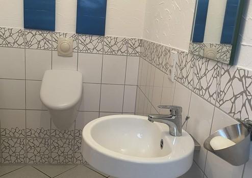 Das Haus verfügt auf beiden Etagen sowie im Keller über jeweils ein Badezimmer. Das Badezimmer im Keller ist aktuell nicht benutzbar. Eine Dusche oder WC ist nicht installiert.