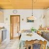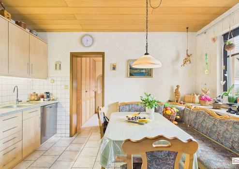 Das Obergeschoss ist seit 2013 vermietet. Die Wohnung mit ca. 55 m² Wohnfläche bietet ein Schlafzimmer, ein Wohnzimmer, eine Wohnküche mit Zugang auf den überdachten Balkon sowie ein kleines Tageslichtbad. Die monatliche Kaltmiete liegt aktuell bei 390 Euro.