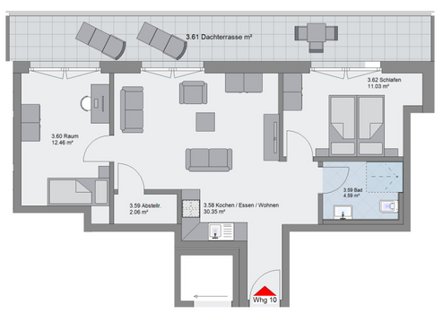 - Lichtdurchfluteter Wohn- und Essbereich mit Zugang zur Dachterrasse