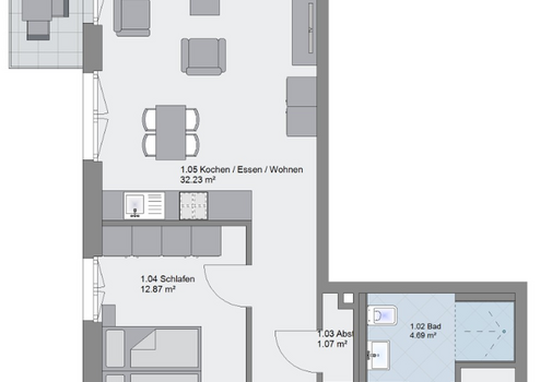 - Großzügiger Wohnbereich mit direktem Zugang zum Balkon – perfekt für entspannte Stunden im Freien