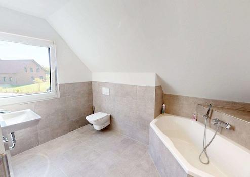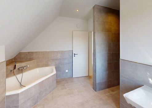 Über eine elegante Holztreppe gelangen Sie ins Obergeschoss, wo Sie drei Schlafzimmer erwarten – eines davon mit angeschlossenem Ankleidezimmer. Das geschmackvoll ausgestattete Familienbad bietet mit ebenerdiger Dusche, Eckbadewanne und stilvollen Details echte Wellnessmomente. Ein weiterer kleiner Abstellraum sorgt für zusätzlichen Stauraum. Im Obergeschoss wurde ein hochwertiger Vinylboden verlegt, der Wärme und Behaglichkeit vermittelt.