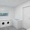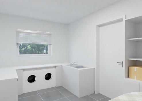 Praktisch ist der sich daran anschließende große Hauswirtschaftsraum, in dem Sie Ihre Waschmaschine und Ihren Trockner anschließen können.