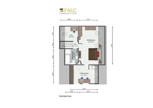 Zur Info, aufgrund der 3D-Perspektive wirken die Räumlichkeiten in der Regel etwas kleiner als in der Realität vor Ort.