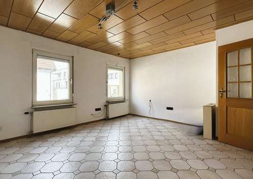 → Großzügiger Wohnbereich mit viel Tageslicht und Zugang zur Terrasse