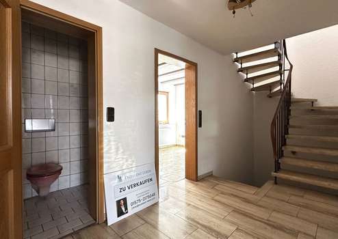 → Hauswirtschaftsraum mit Waschmaschinenanschluss und direktem Terrassenzugang