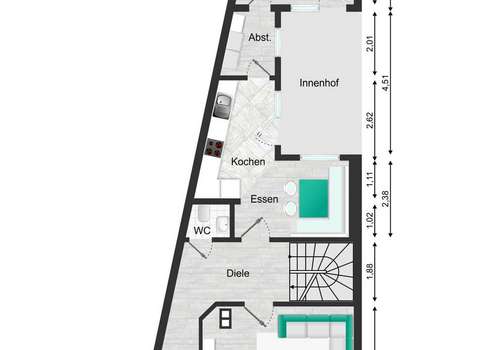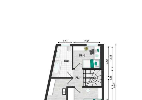 → Wohnfläche ca. 90,4 m² auf drei Etagen – ideal für Familien, Paare oder als Mehrgenerationenlösung