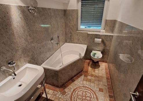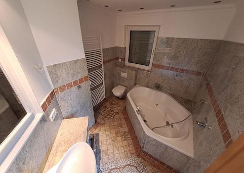 Helle Wohnungen, teilweise Parkett und Fliesenfußbodenoberbelag, Granit, Eckbadewanne, Handtuchheizkörper, Küche mit Terrassenausgang, Bäder mit Tageslicht, Kuntstofffenster mit Isolierverglasung, Gasheizung.