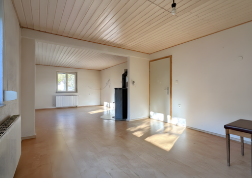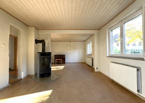 Im Erdgeschoss erwartet Sie eine funktionale Raumaufteilung mit einer hellen Küche inklusive Einbauküche, einem Gäste-WC, einem Büro oder Gäste-Zimmer sowie einem großzügigen Wohn- und Essbereich mit Blick in den Garten. Viele Fenster sorgen für eine angenehme Helligkeit und ein freundliches Raumgefühl. Der Specksteinofen im Wohnzimmer sorgt für eine tolle Atmosphäre und effiziente Beheizung an kalten Wintertagen.