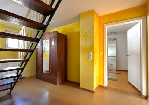 Das Wohnhaus erstreckt sich über drei Etagen und wurde stets gepflegt. Es präsentiert sich in einem soliden Zustand mit einer gepflegten Ausstattung – perfekt für Käuferinnen und Käufer, die ihr neues Zuhause nach eigenen Vorstellungen gestalten möchten.
