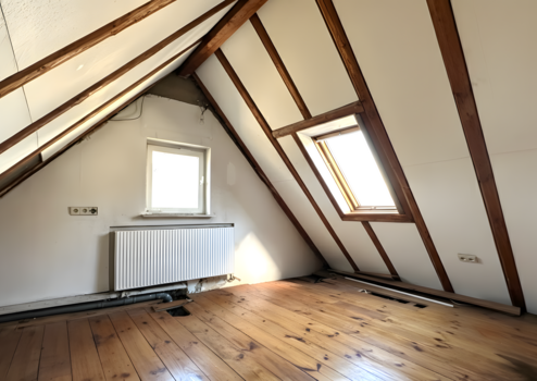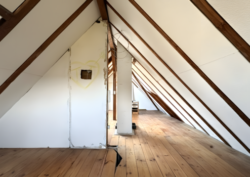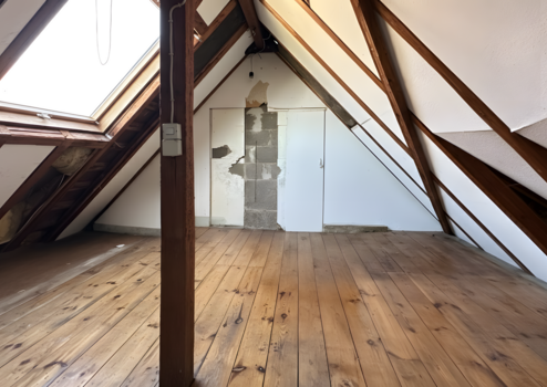 Das Obergeschoss verfügt über drei weitere Zimmer, die sich ideal als Schlafzimmer, Kinderzimmer oder Büro nutzen lassen. Hier befindet sich auch ein weiteres Badezimmer mit Badewanne und WC. Im Dachgeschoss steht zusätzlich ein ausgebautes Studio zur Verfügung – ideal als Gästezimmer, Hobbyraum oder Rückzugsort.