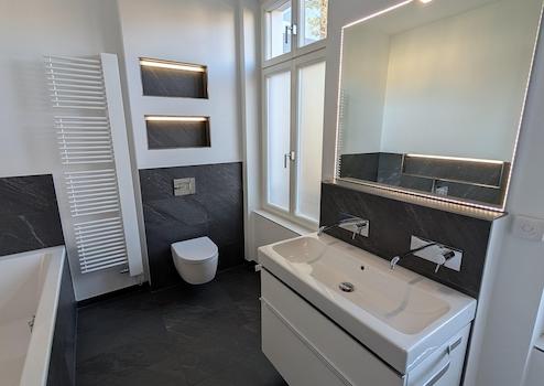 Die Wohnung verfügt über zwei stilvolle Bäder: